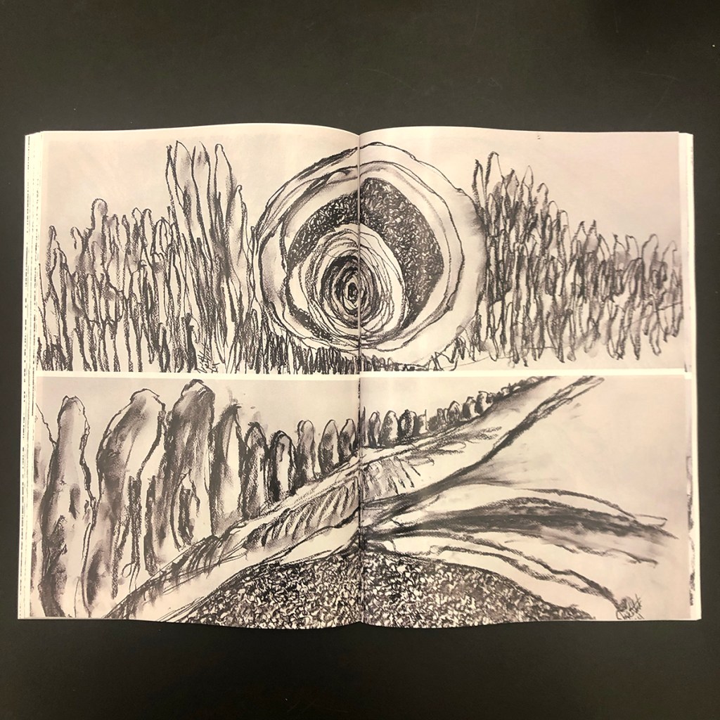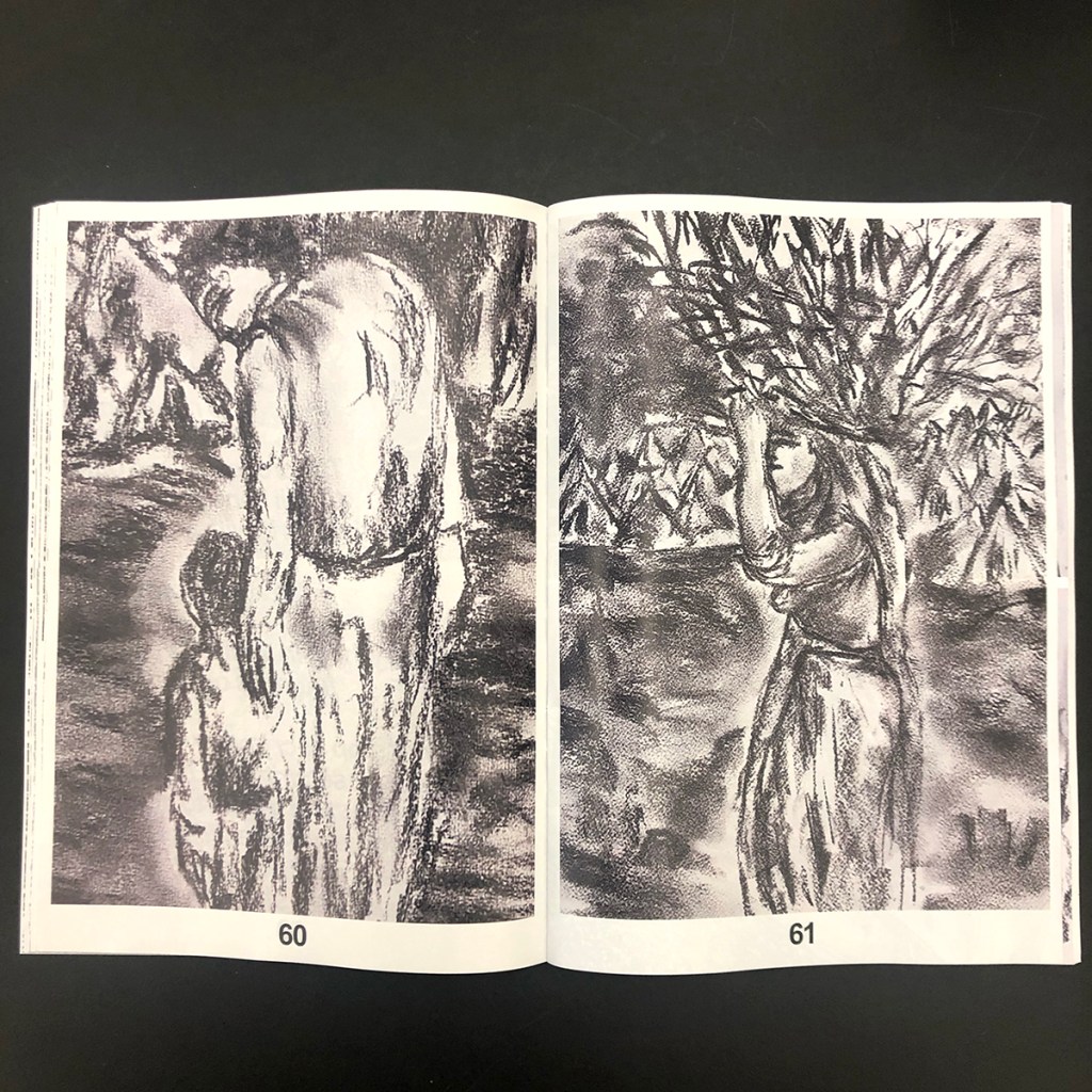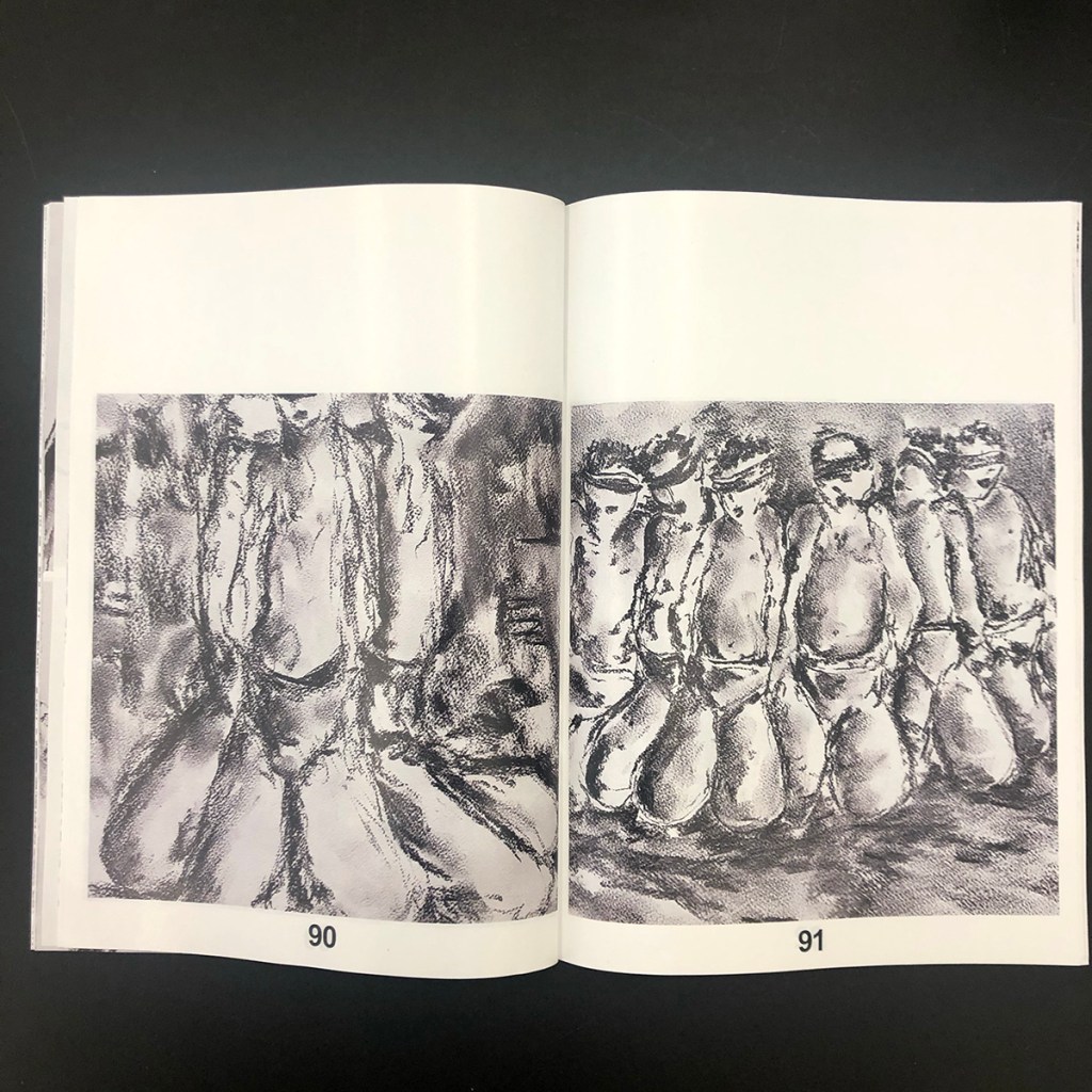 The drawings in this collection were all created during the genocidal war on Gaza (oct. 2023 – ongoing) and depict a deliberately confused, black- and-white scenario in which the artist traces, through clear and faded lines, images of refugee camps, tents, conglomerates of displaced people, and lacerated streets, all fused into a dense and highly compelling composition whose abstraction reproduces the looming and constant sense of bewilderment and confusion.