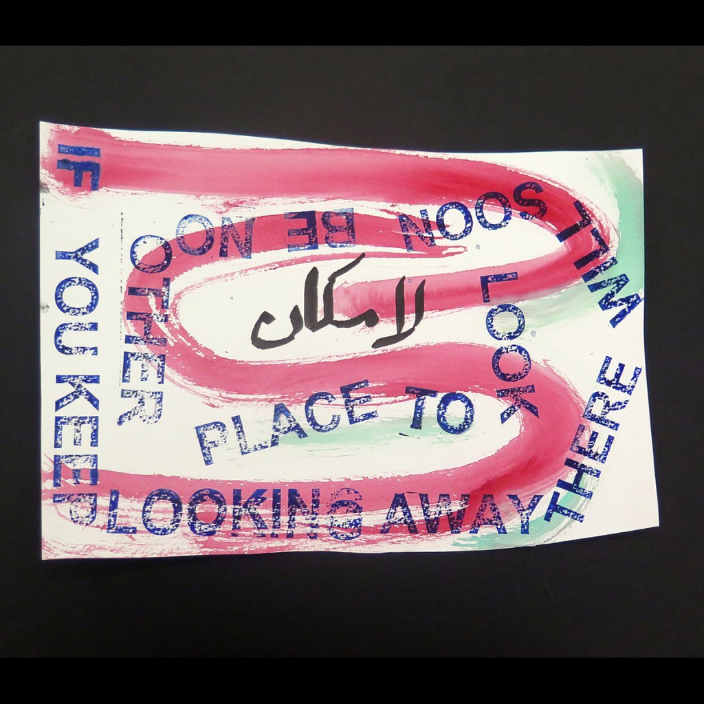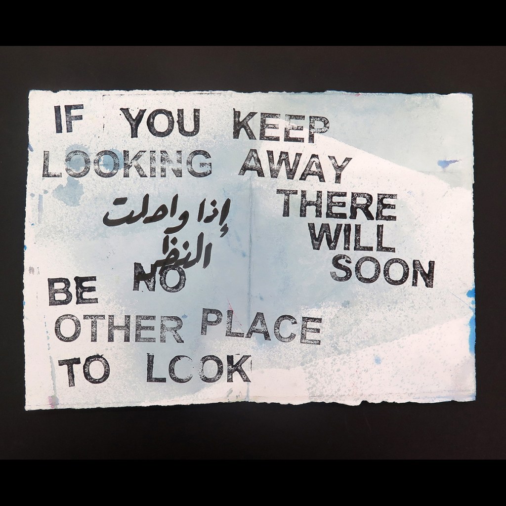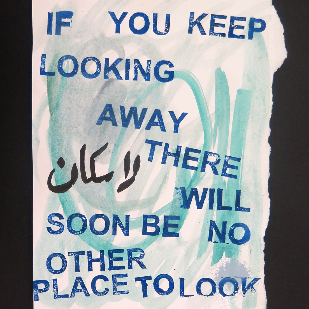 David Horvitz ‘IF YOU KEEP LOOKING AWAY THERE WILL SOON BE NO OTHER PLACE TO LOOK’, Mail Art postcard editions – with text in Arabic by Ali Eyal.