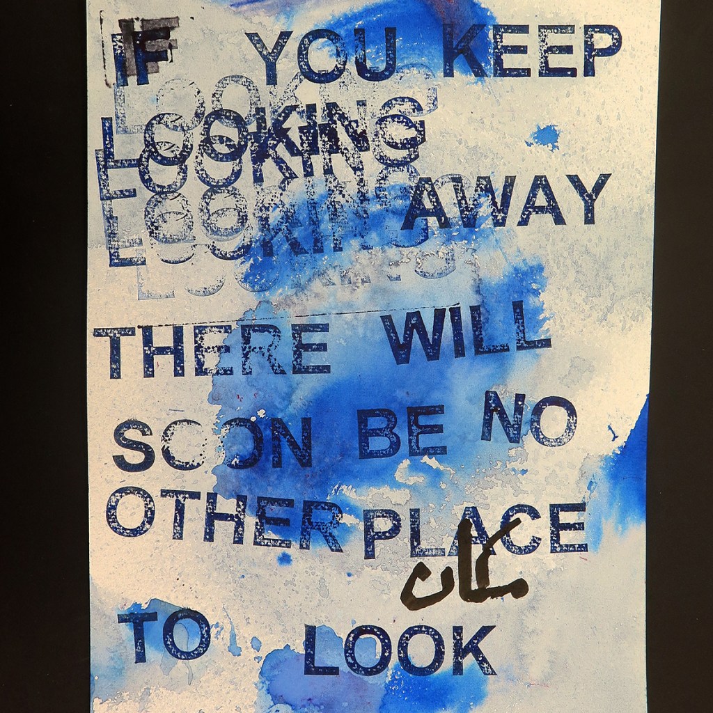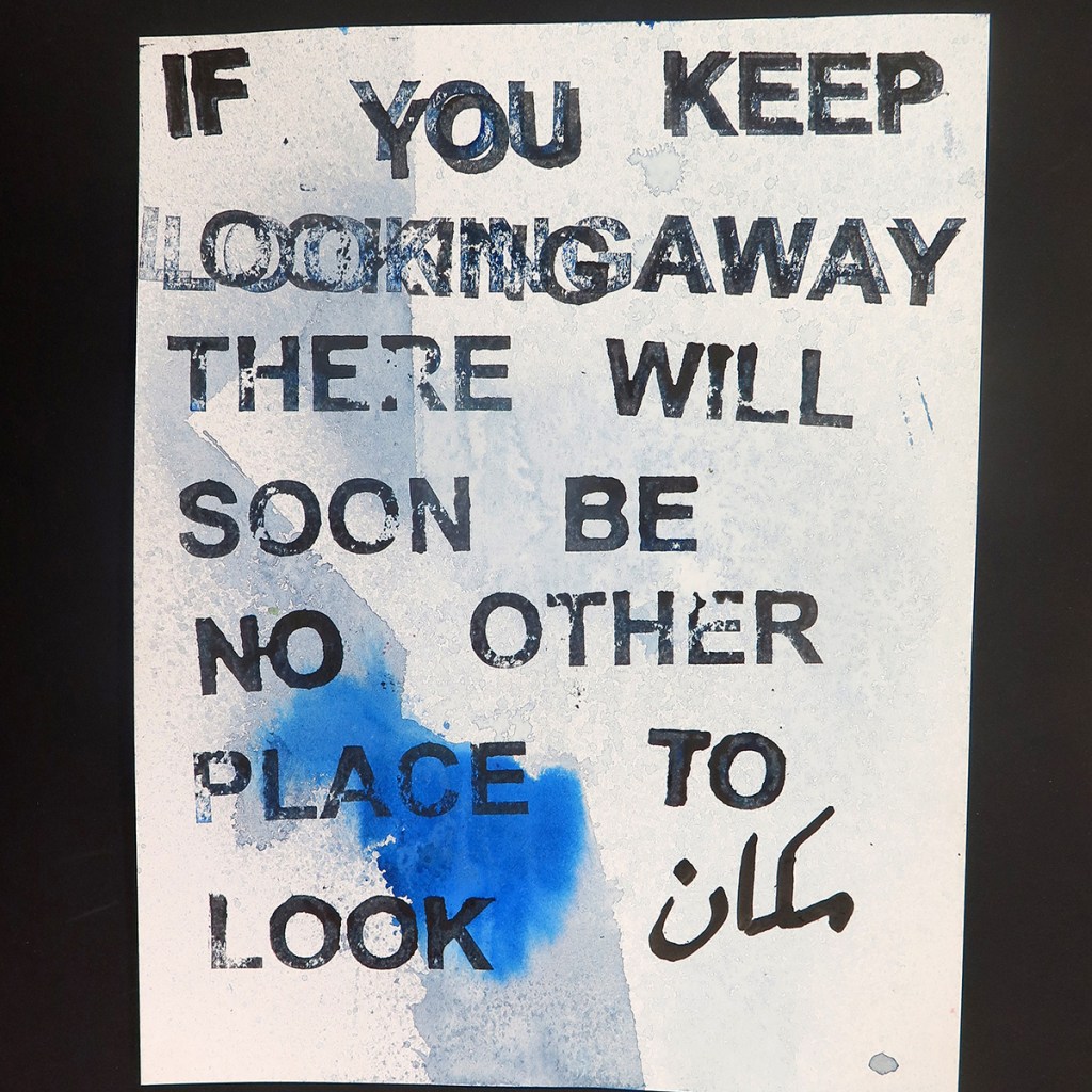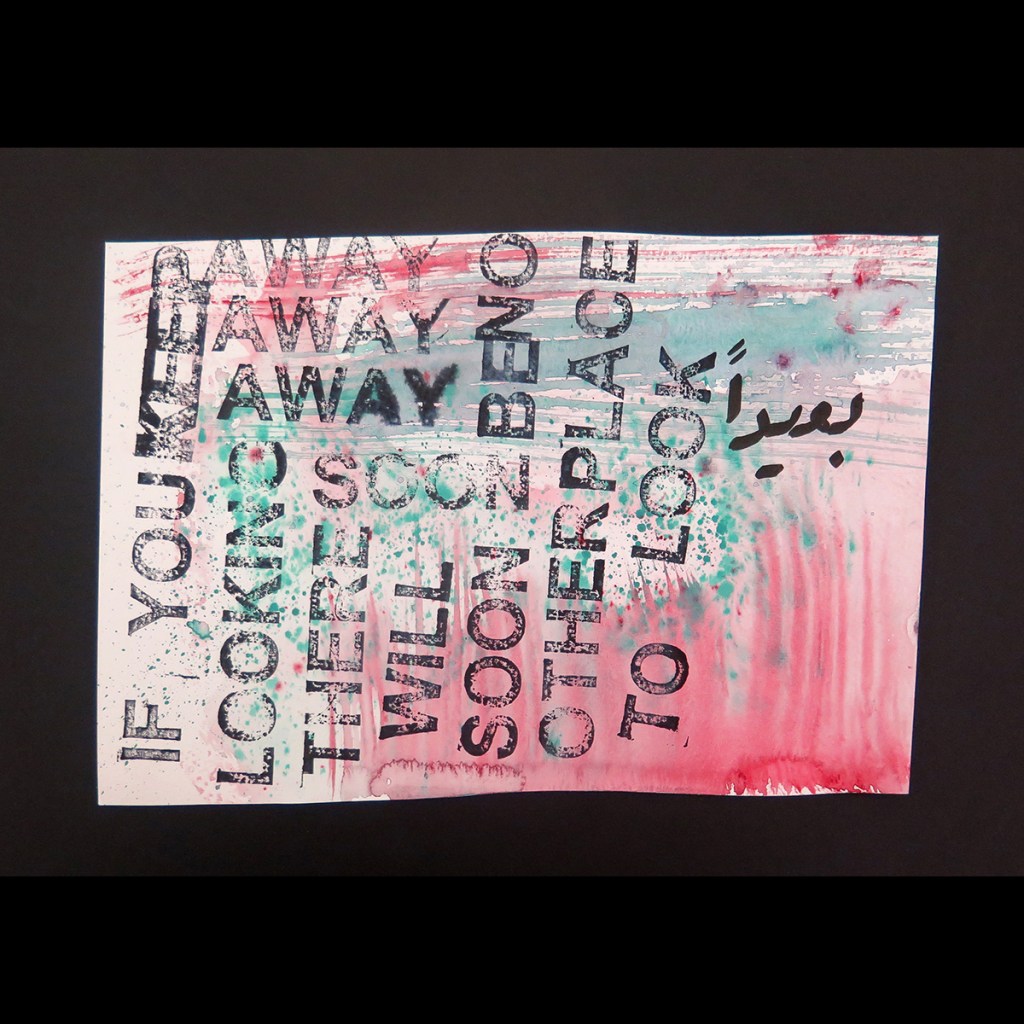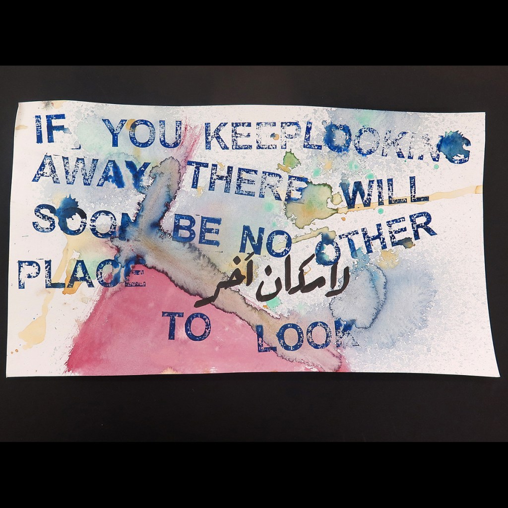 David Horvitz ‘IF YOU KEEP LOOKING AWAY THERE WILL SOON BE NO OTHER PLACE TO LOOK’, Mail Art postcard editions – with text in Arabic by Ali Eyal.