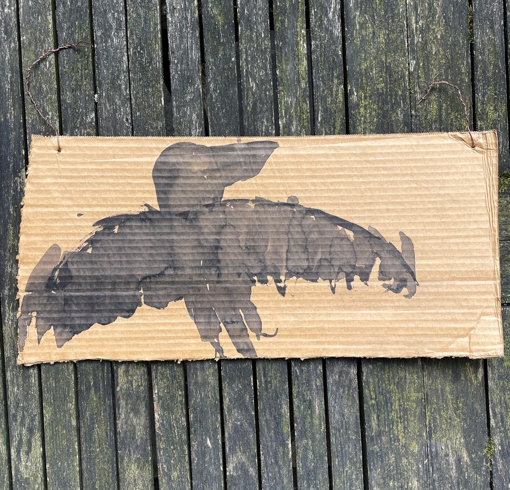 Acrylic and ink on recycled cardboard, approximately 50cm x 70cm (size varies depending on the individual piece)
