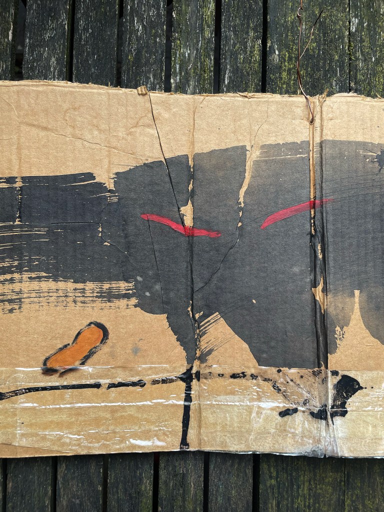 Acrylic and ink on recycled cardboard, 48cm x 120cm